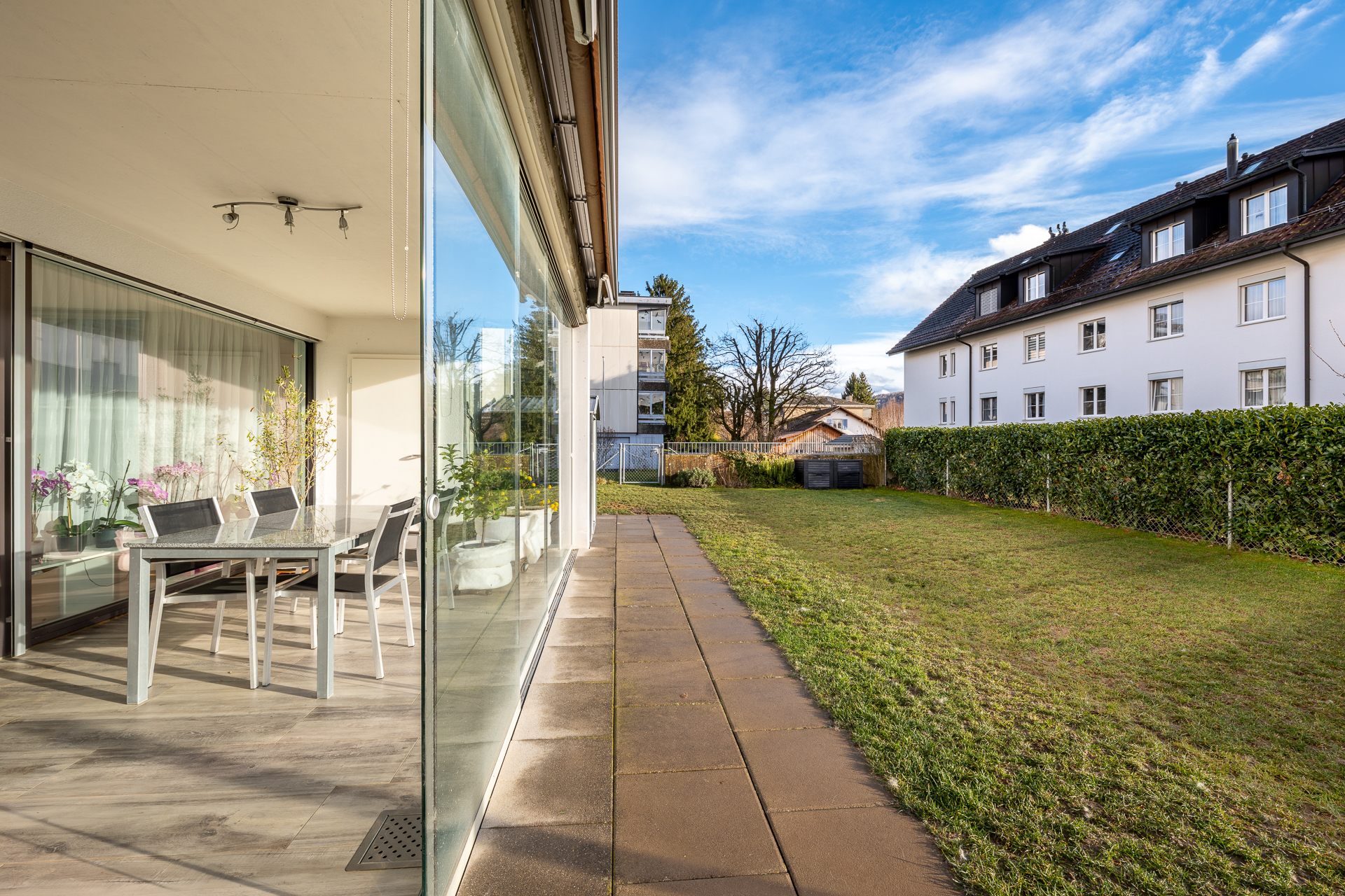 Moderne 4.5-Zimmer-Gartenwohnung mit Wintergarten und Gartenfläche