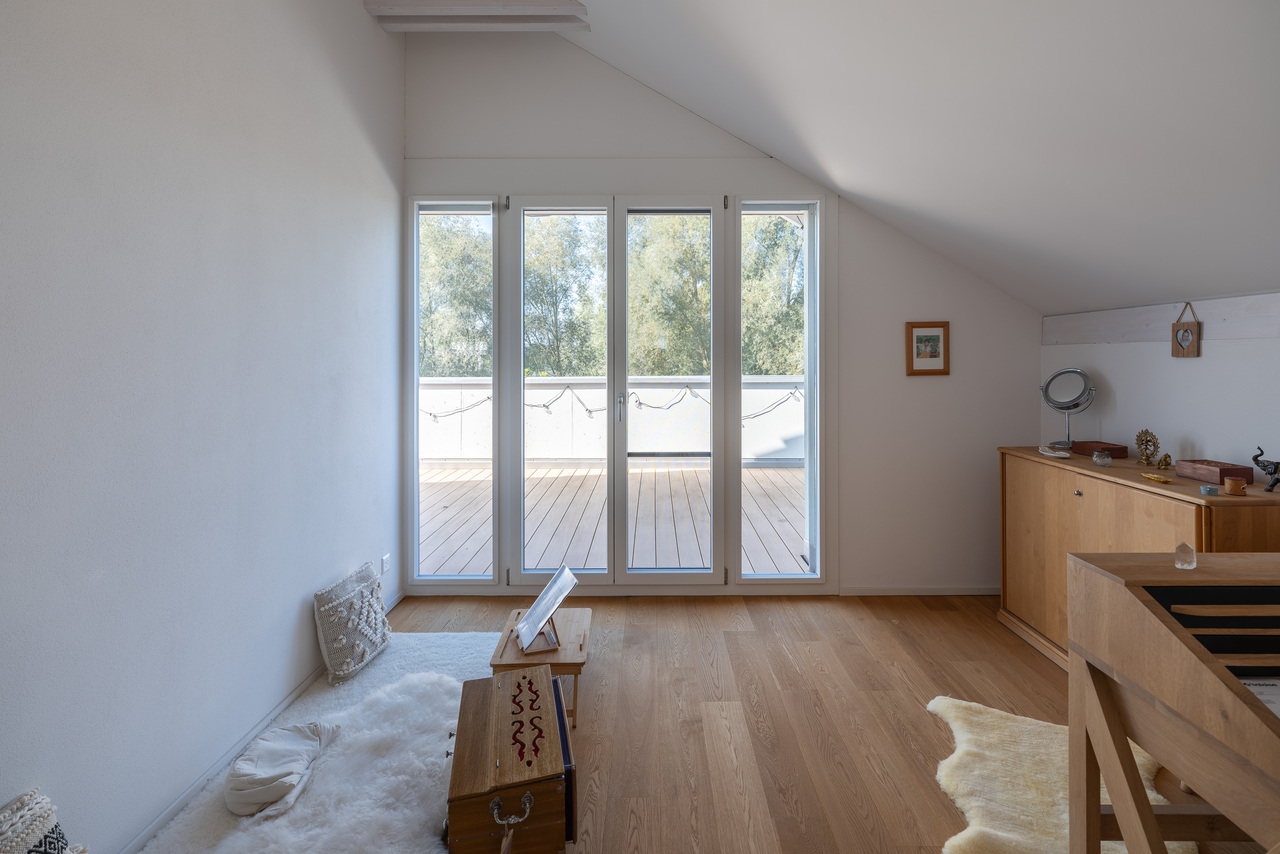 Zwei Schlafzimmer auf der Westseite verfügen über direkten Zugang zur grosszügigen Terrasse mit hoher Privatsphäre.